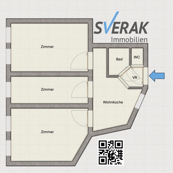 Diese ca. 65 m² große Wohnung befindet sich im 1. Stock eines gepflegten Altbau-Gründerzeithauses und wird ab sofort provisionsfrei zur langfristigen Miete angeboten. Die Wohnung verfügt über einen funktionalen Grundriss mit drei separat begehbaren Zimmern sowie einer zentralen Wohnküche, die alle Räume miteinander verbindet und als gemeinsamer Wohn- und Aufenthaltsbereich dient. Die Küche ist mit den wichtigsten Geräten ausgestattet und bietet Platz für einen kompakten Essbereich. Für den täglichen Komfort sorgen ein separates WC sowie ein Badezimmer mit Dusche und Waschmaschinenanschluss. Die Wohnung präsentiert sich in gepflegtem, einfachem Zustand und überzeugt durch ihre funktionale Ausstattung und die praktische Raumaufteilung. Selbstverständlich sind alle wichtigen Anschlüsse (Telefon, Kabel-TV, Gegensprechanlage) vorhanden. Ein Kellerabteil steht ebenfalls zur Verfügung. Die Wohnung überzeugt durch ihre praktische Raumaufteilung, die getrennt begehbaren Zimmer und den klassischen Altbau-Charakter.